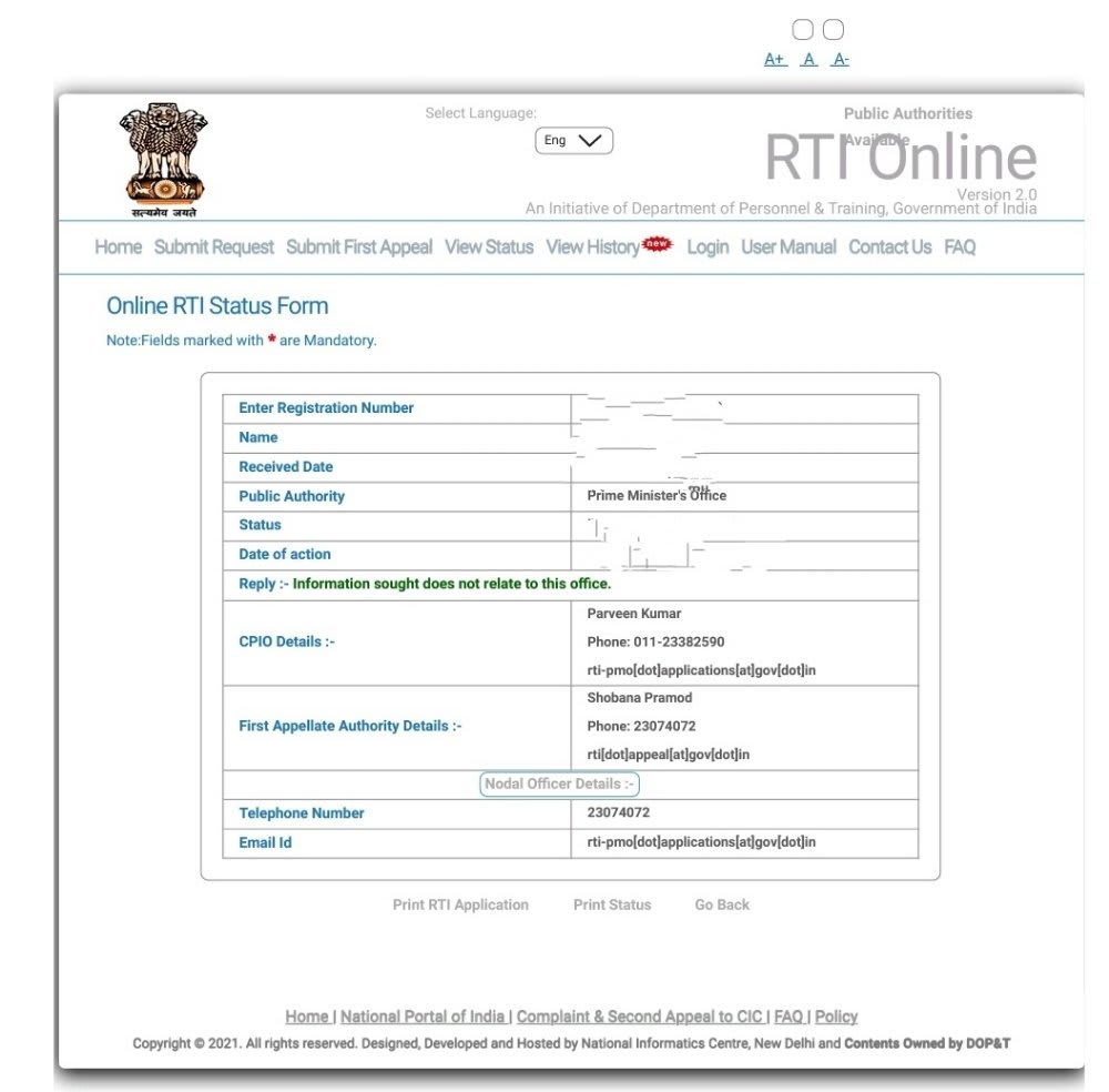 As per RTI Ac,t if the information sought doesn’t belong to a particular department it has to be forwarded to the concerned dept and the same has to be conveyed to the applicant, but the PIO Parveen Kumar highest office of the Country, PMO, shrugged of his responsibilties by disposing off the RTI and information sought , why the PIO did this is something only the PIO can reply, either there has been no progress on the formation of a Government Panel for looking in to something, which had become a issue for Prime Time discussions of the News Channels Or was it sheer Politics which with time faded off and lost it’s steam 🤔,